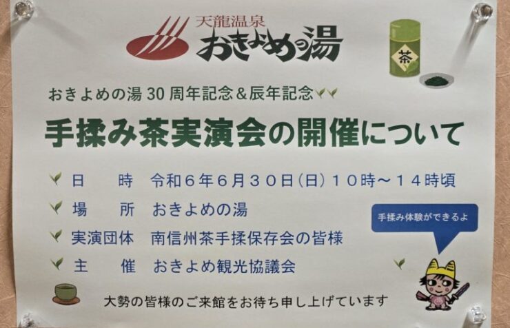 令和6年6月30日(日)おきよめの湯館内で手揉み茶実演会...