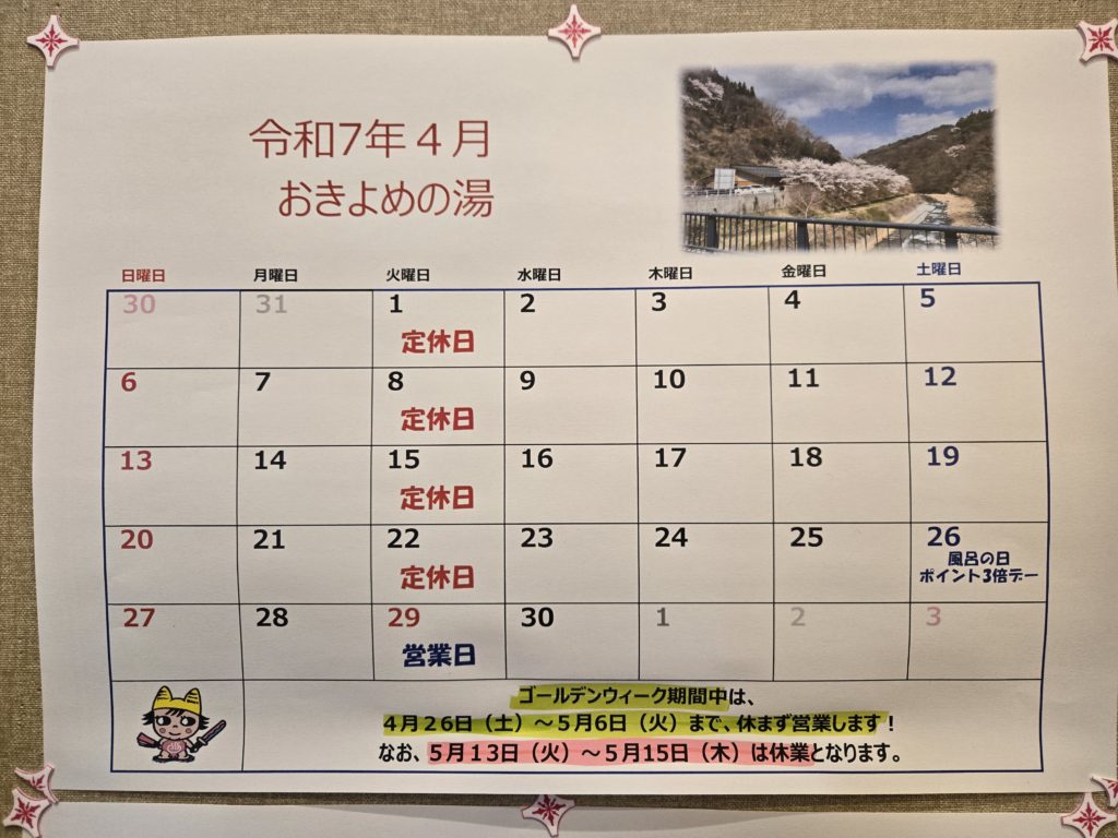 日頃よりおきよめの湯をご利用いただきありがとうございます。