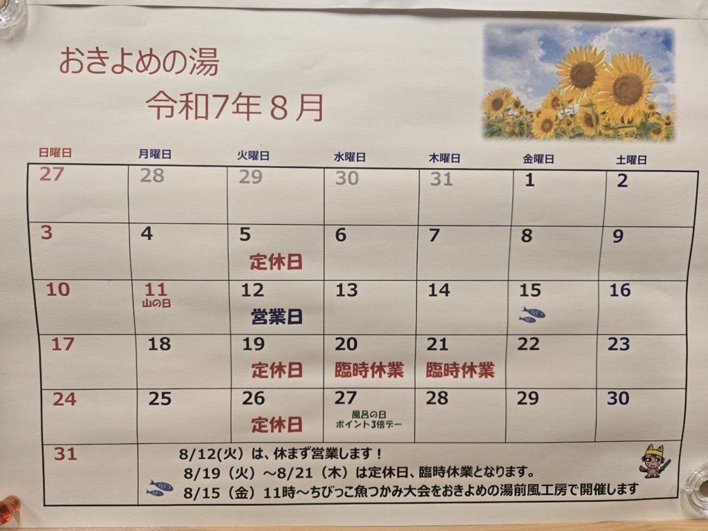 日頃よりおきよめの湯をご利用いただきありがとうございます。