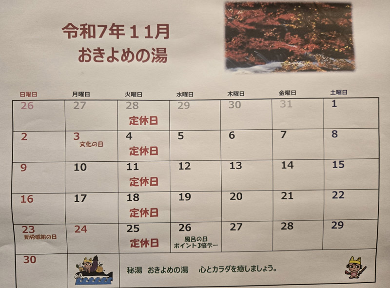 日頃よりおきよめの湯をご利用いただきありがとうございます。